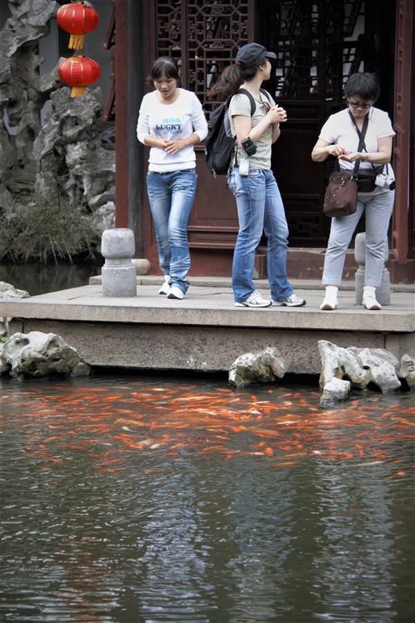 Everyone likes to feed the fish.