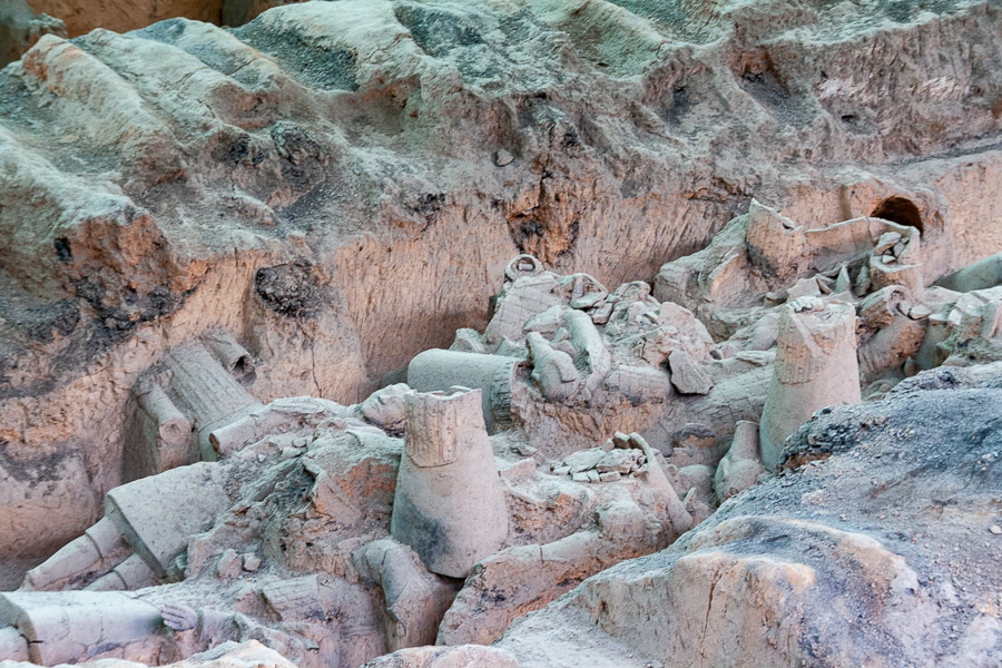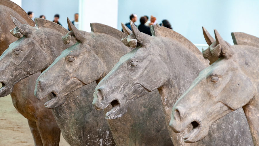The thousands of life sized warriors made of terracotta that were expected to protect the first emperor of China (221 BCE) in the afterlife have been described as the Eighth Wonder of the World. Although quite a few other things have been given that title, I heartily endorse the Terracotta Army. Images and descriptions of the army abound and I include a slideshow here of my images as well as other sources of detailed information.